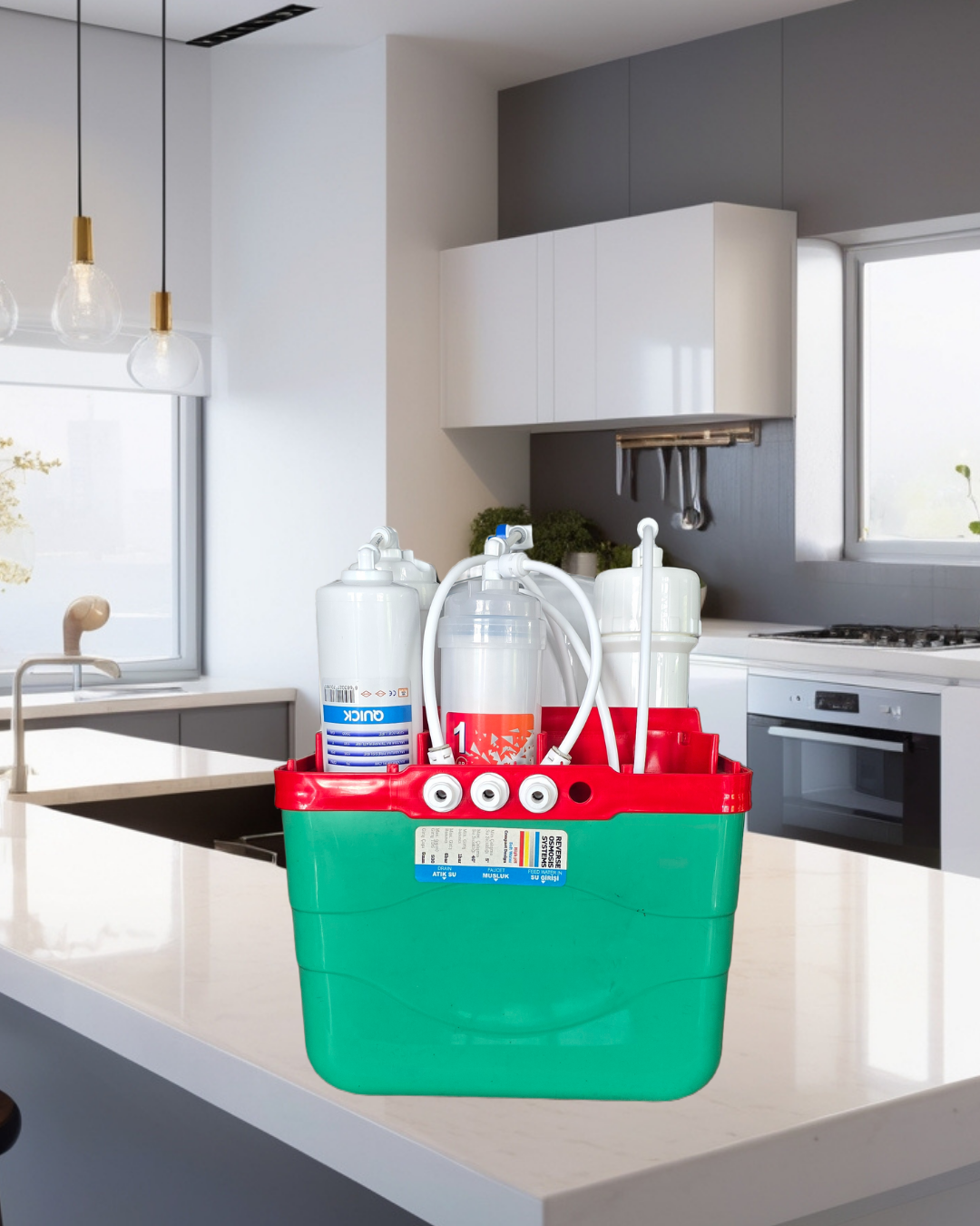 Yüksek verimli 6 aşamalı filtreleme sistemine sahip bu kompakt su arıtma cihazı, tortu, klor, ağır metaller ve kötü kokuları etkili şekilde arındırarak saf, sağlıklı ve lezzetli içme suyu sunar. Şık tasarımı, hızlı bağlantı yapısı ve opsiyonel pompa seçeneği ile hem ev hem de ofis kullanımı için idealdir